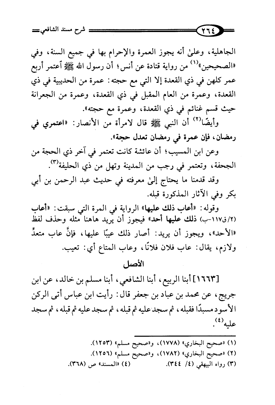 [1663] أبنا الربيع، أبنا الشافعي، أبنا مسلم بن خالد، عن ابن جريج، عن محمَّد بن عباد بن جعفر قال: رأيت ابن عباس أتى الركن الأسود مسبدًا فقبله، ثم سجد عليه ثم قبله، ثم سجد عليه ثم قبله، ثم سجد عليه (¬4).