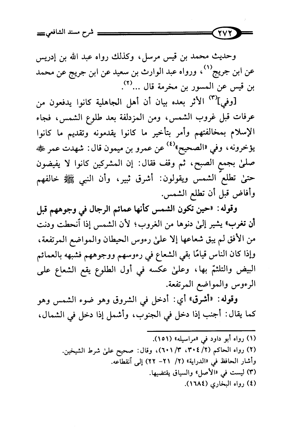 [وفي] (¬3) الأثر بعده بيان أن أهل الجاهلية كانوا يدفعون من عرفات قبل غروب الشمس، ومن المزدلفة بعد طلوع الشمس، فجاء الإِسلام بمخالفتهم وأمر بتأخير ما كانوا يقدمونه وتقديم ما كانوا يؤخرونه، وفي "الصحيح" (¬4) عن عمرو بن ميمون قال: شهدت عمر -رضي الله عنه- صلى بجمعٍ الصبح، ثم وقف فقال: إن المشركين كانوا لا يفيضون حتى تطلع الشمس ويقولون: أشرق ثبير، وأن النبي - صلى الله عليه وسلم - خالفهم وأفاض قبل أن تطلع الشمس.