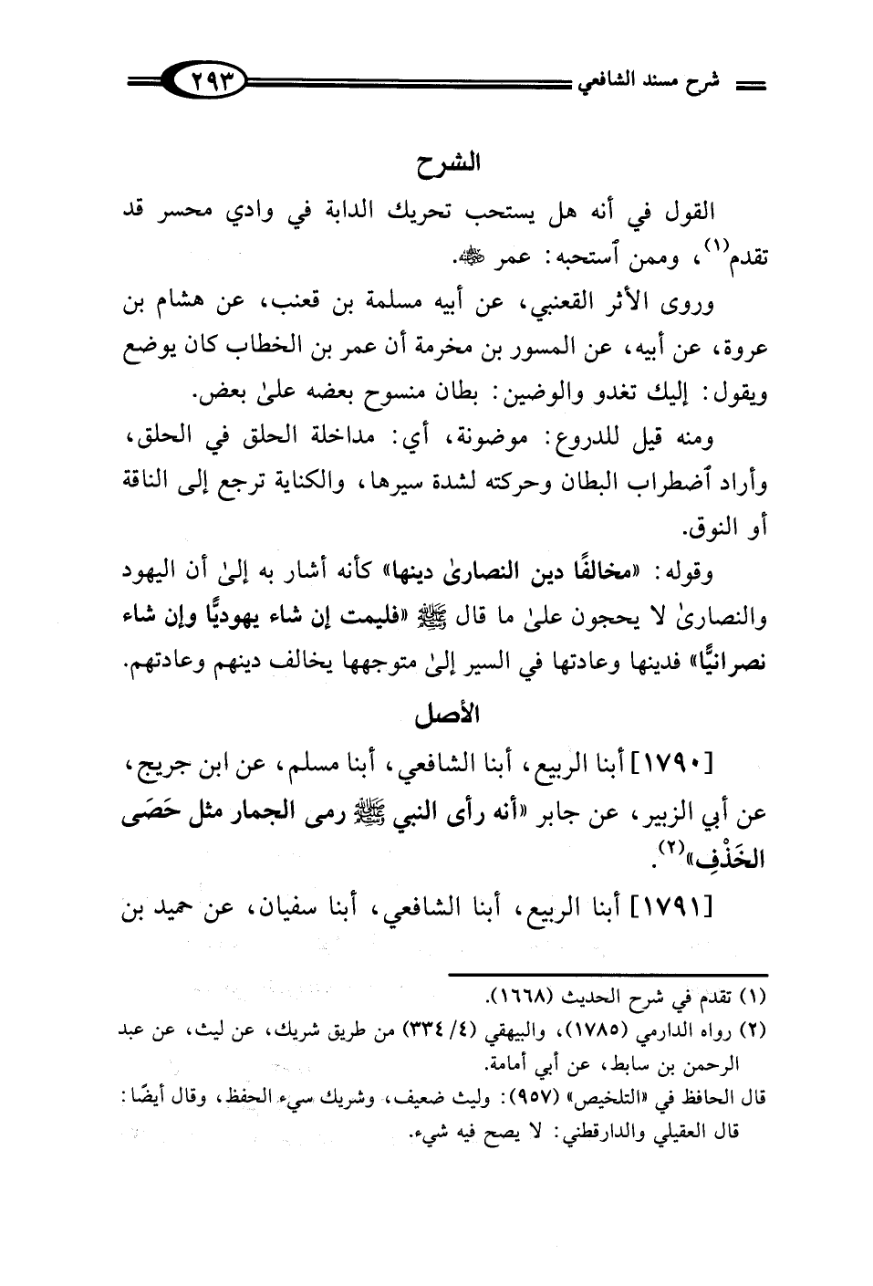 [1690] أبنا الربيع، أبنا الشافعي، أبنا مسلم، عن ابن جريج، عن أبي الزبير، عن جابر "أنه رأى النبي - صلى الله عليه وسلم - رمى الجمار مثل حَصَى الخَذْفِ" (¬2).