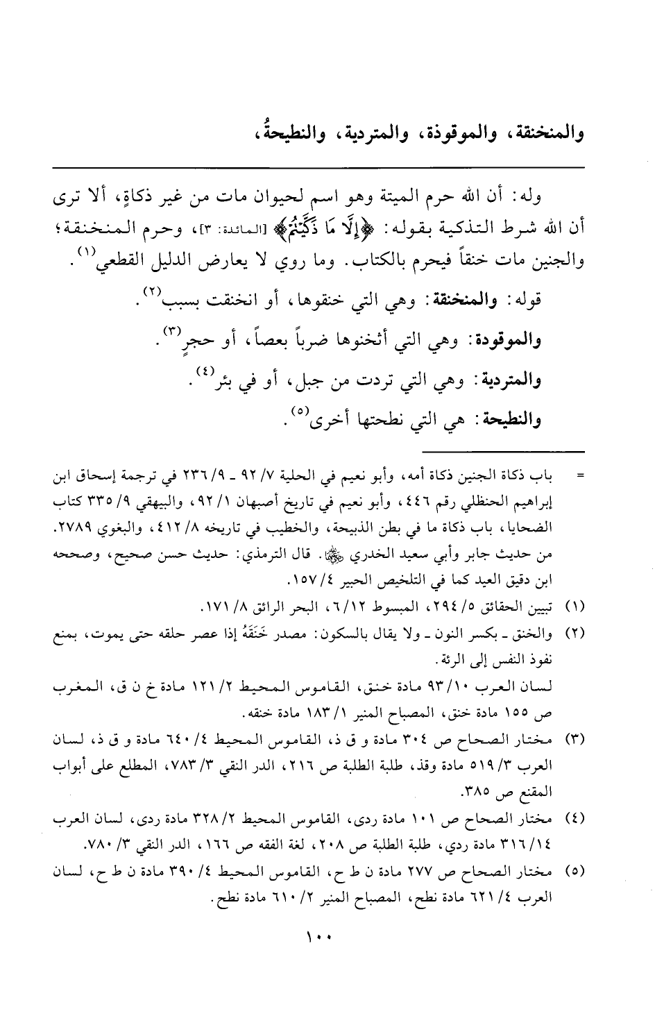 (¬٣) مختار الصحاح ص ٣٠٤ مادة وق ذ، القاموس المحيط ٤/ ٦٤٠ مادة وق ذ، لسان العرب ٣/ ٥١٩ مادة وقذ، طلبة الطلبة ص ٢١٦، الدر النقي ٣/ ٧٨٣، المطلع على أبواب المقنع ص ٣٨٥.