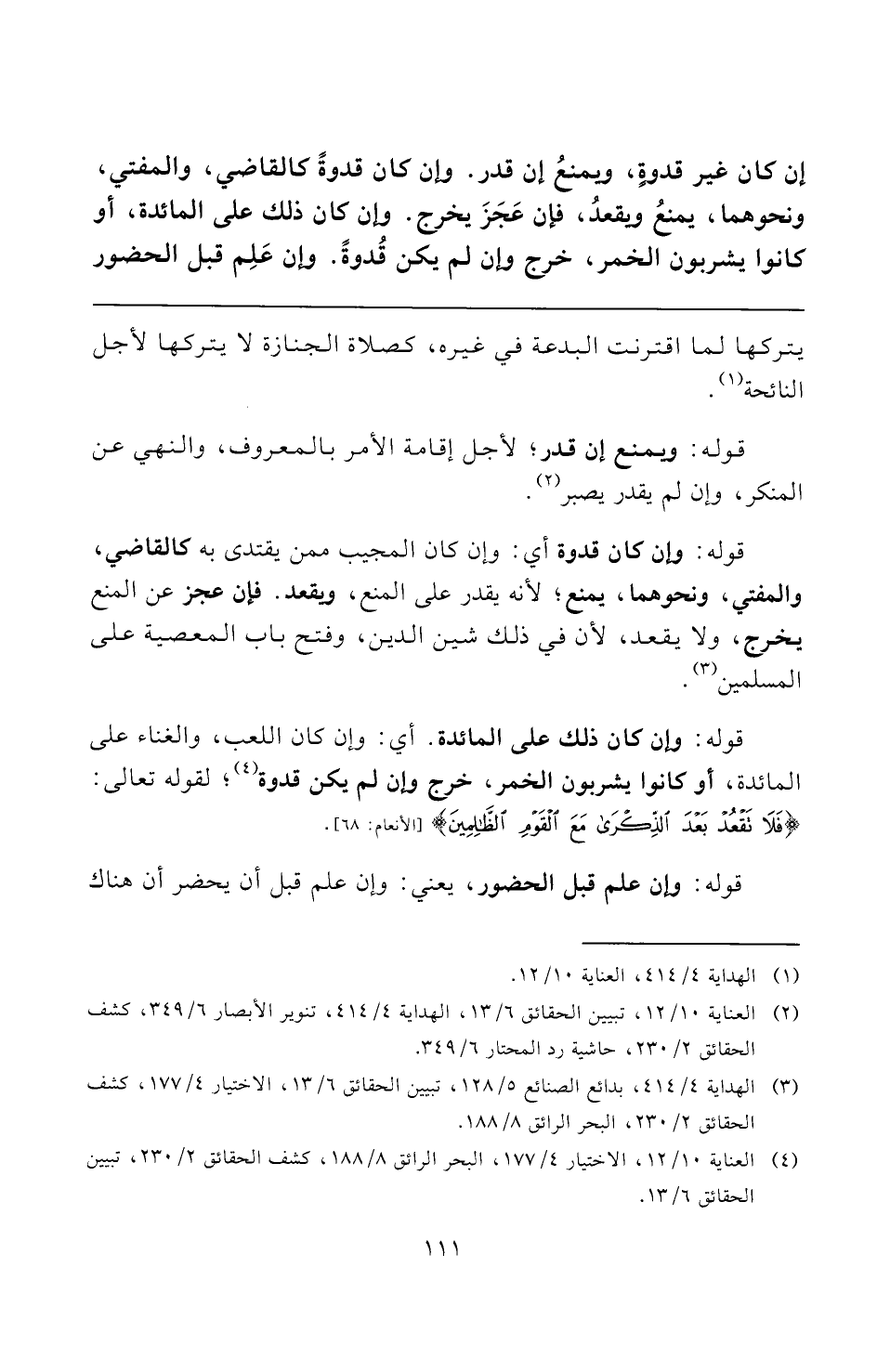 (¬٤) العناية ١٠/ ١٢، الاختيار ٤/ ١٧٧، البحر الرائق ٨/ ١٨٨، كشف الحقائق ٢/ ٢٣٠، تبيين الحقائق ٦/ ١٣.