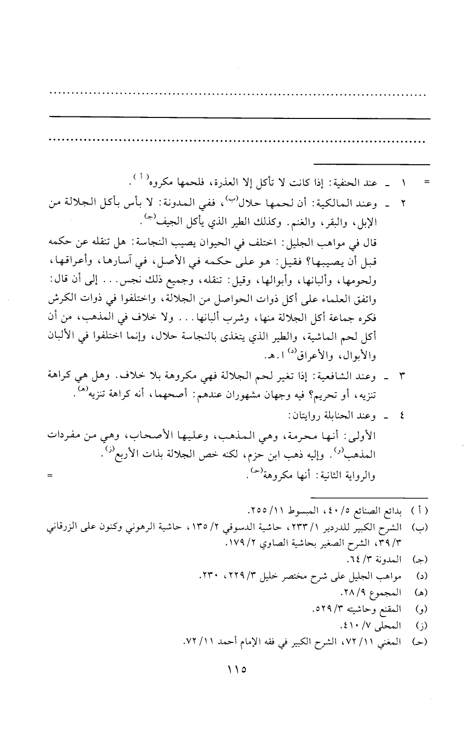 = ١ - عند الحنفية: إذا كانت لا تأكل إلا العذرة، فلحمها مكروه (أ).