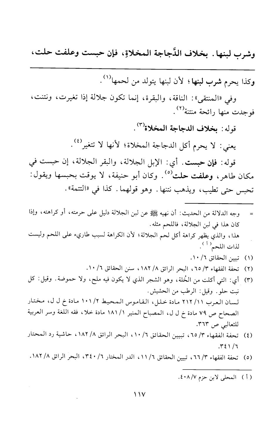 هذا، والذي يظهر كراهة أكل لحم الجلالة؛ لأن الكراهة لسبب طاريء على اللحم وليست لذات اللحم (أ).