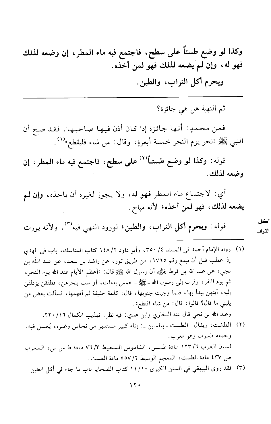 (¬٣) فقد روى البيهقي في السنن الكبرى ١٠/ ١١ كتاب الضحايا باب ما جاء في أكل الطين =