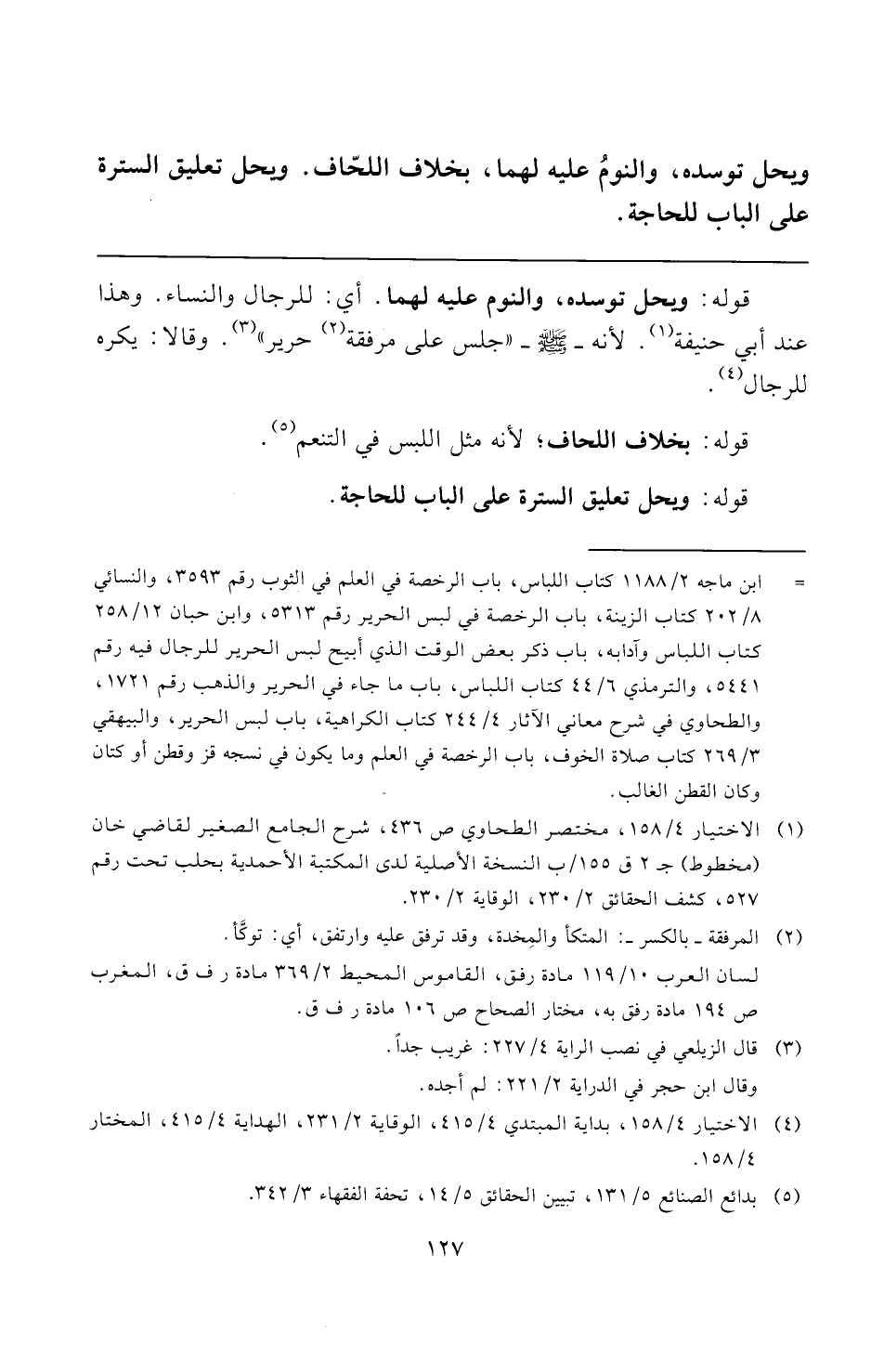 (¬١) الاختيار ٤/ ١٥٨، مختصر الطحاوي ص ٤٣٦، شرح الجامع الصغير لقاضي خان (مخطوط) جـ ٢ ق ١٥٥/ ب النسخة الأصلية لدى المكتبة الأحمدية بحلب تحت رقم ٥٢٧، كشف الحقائق ٢/ ٢٣٠، الوقاية ٢/ ٢٣٠.