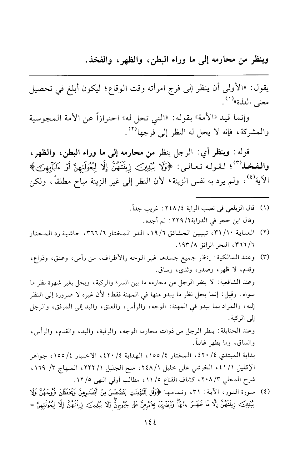 (¬٢) العناية ١٠/ ٣١، تبيين الحقائق ٦/ ١٩، الدر المختار ٦/ ٣٦٦، حاشية رد المحتار ٦/ ٣٦٦، البحر الرائق ٨/ ١٩٣.