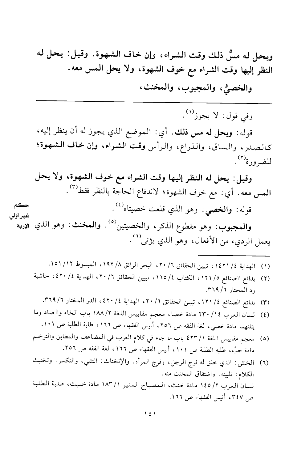 (¬٤) لسان العرب ١٤/ ٢٣٠ مادة خصا، معجم مقاييس اللغة ٢/ ١٨٨ باب الخاء والصاد وما يثلثهما مادة خصي، لغة الفقه ص ٢٥٦، أنيس الفقهاء ص ١٦٦، طلبة الطلبة ص ١٠١.