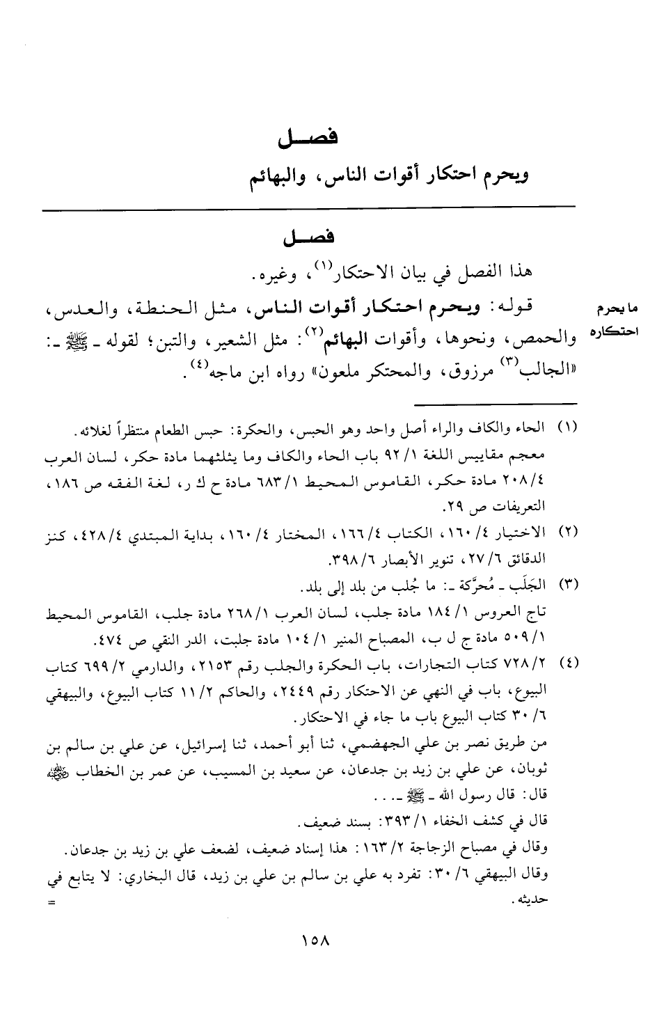 (¬٤) ٢/ ٧٢٨ كتاب التجارات، باب الحكرة والجلب رقم ٢١٥٣، والدارمي ٢/ ٦٩٩ كتاب البيوع، باب في النهي عن الاحتكار رقم ٢٤٤٩، والحاكم ٢/ ١١ كتاب البيوع، والبيهقي ٦/ ٣٠ كتاب البيوع باب ما جاء في الاحتكار.