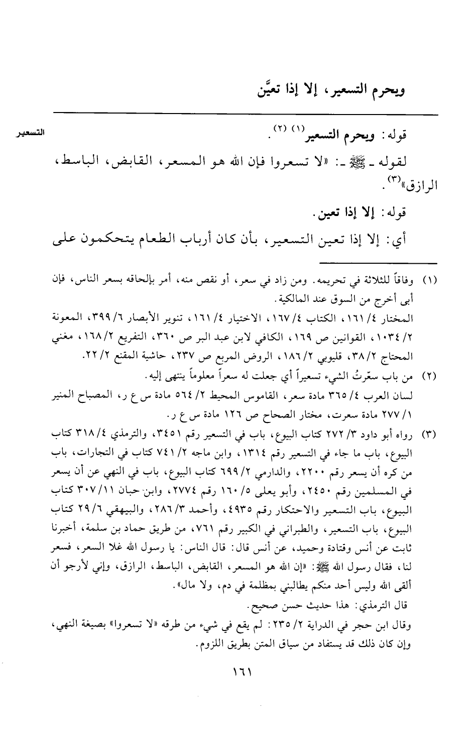 (¬٢) من باب سعّرتُ الشيء تسعيرًا أي جعلت له سعرًا معلومًا ينتهى إليه.