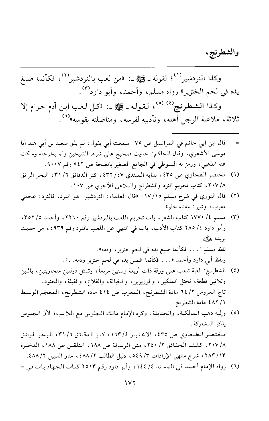 (¬١) مختصر الطحاوي ص ٤٣٥، بداية المبتدي ٤٧/ ٤٣٢، كنز الدقائق ٦/ ٣١، البحر الرائق ٨/ ٢٠٧، كتاب تحريم النرد والشطرنج والملاهي للآجري ص ١٠٧.