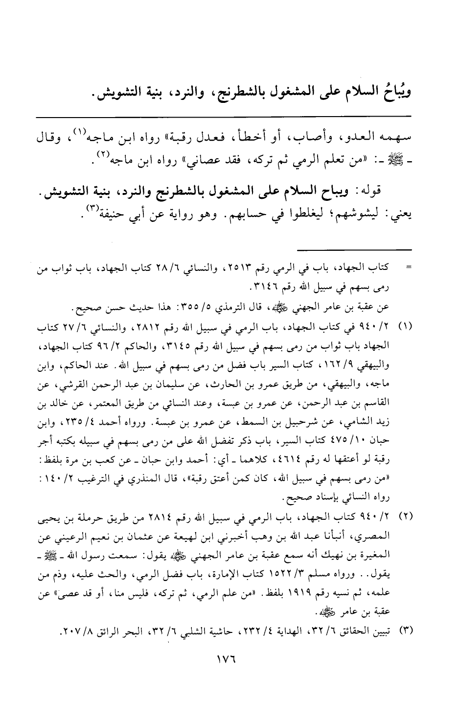 ويُباحُ السلام على المشغول بالشطرنج، والنرد، بنية التشويش.