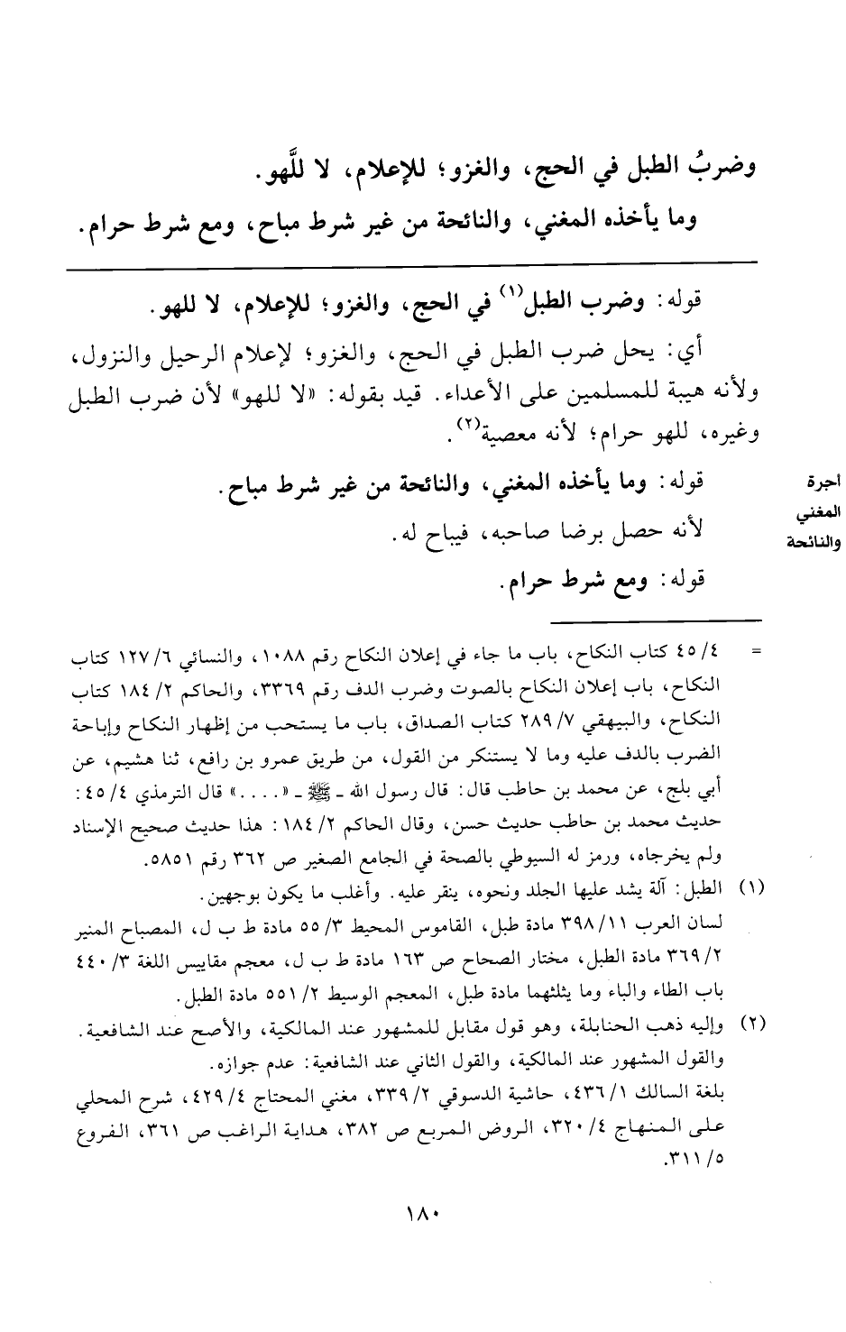 وضربُ الطبل في الحج، والغزو؛ للإعلام، لا للَّهو.