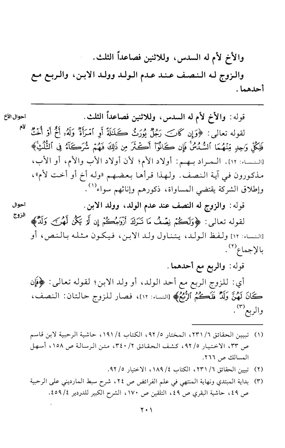 (¬٣) بداية المبتدي ونهاية المنتهي في علم الفرائض ص ٢٤، شرح سبط المارديني على الرحبية ص ٤٩، حاشية البقري ص ٤٩، التلقين ص ١٧٠، الشرح الكبير للدردير ٤/ ٤٥٩.