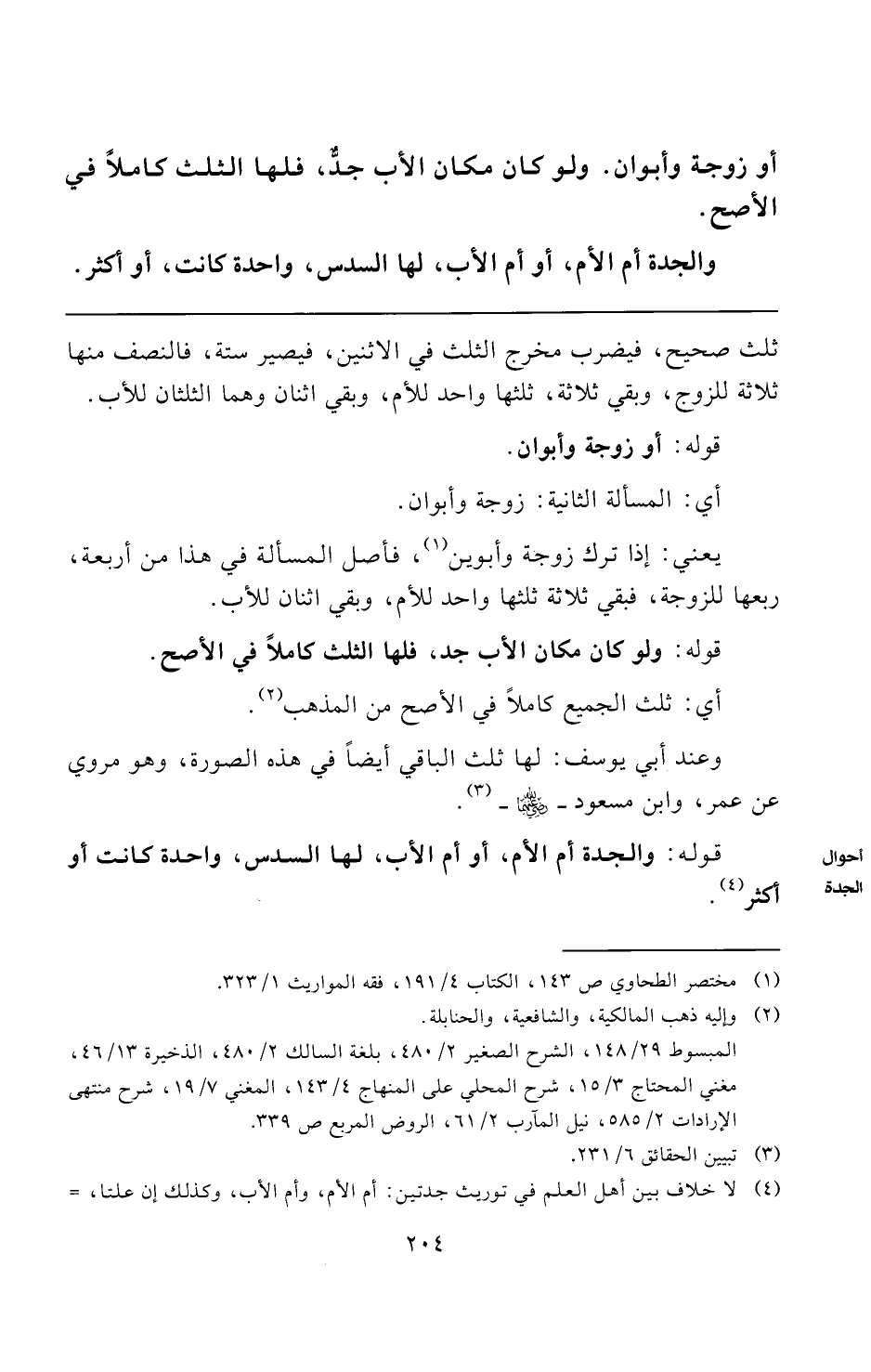 (¬١) مختصر الطحاوي ص ١٤٣، الكتاب ٤/ ١٩١، فقه المواريث ١/ ٣٢٣.