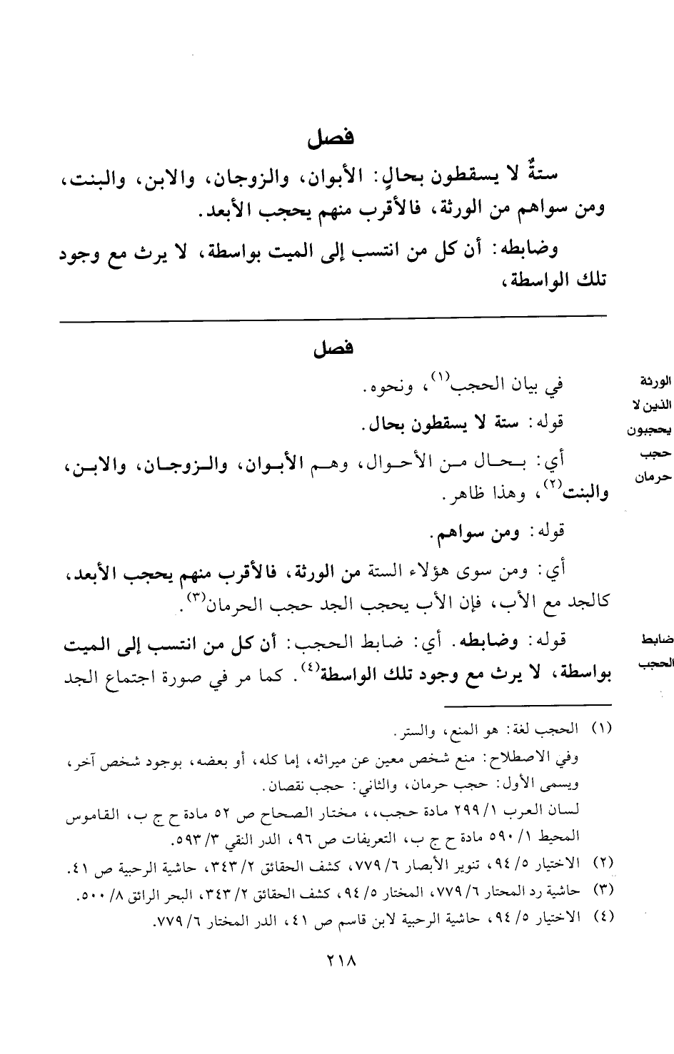 (¬٤) الاختيار ٥/ ٩٤، حاشية الرحبية لابن قاسم ص ٤١، الدر المختار ٦/ ٧٧٩.