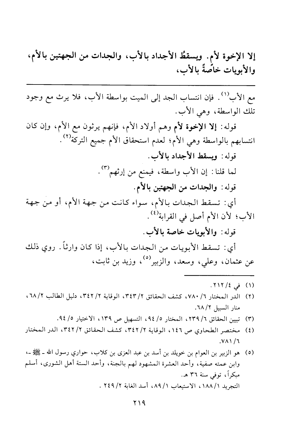 إلا الإخوة لأمٍ. ويسقُط الأجداد بالأب، والجدات من الجهتين بالأم، والأبويات خاصةً بالأب،