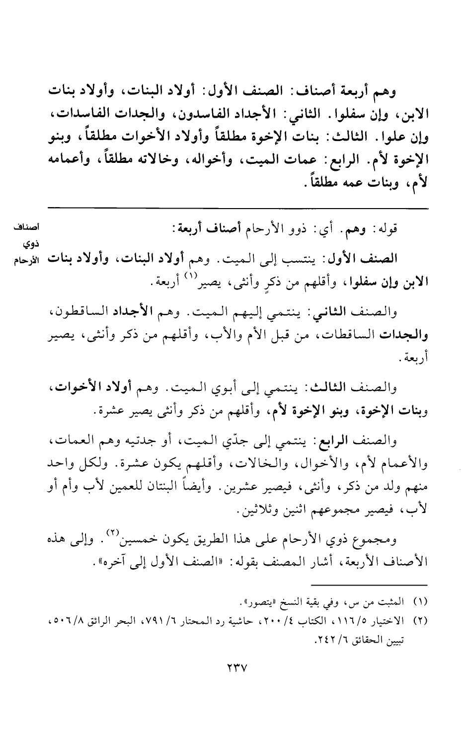 ومجموع ذوي الأرحام على هذا الطريق يكون خمسين (¬٢). وإلى هذه الأصناف الأربعة، أشار المصنف بقوله: "الصنف الأول إلى آخره".