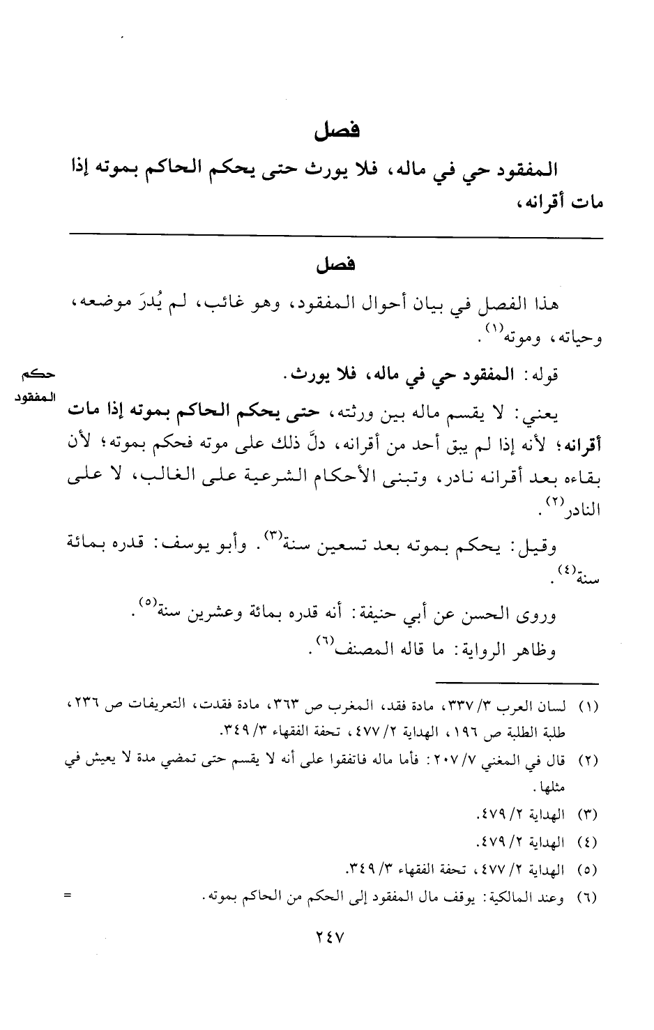(¬١) لسان العرب ٣/ ٣٣٧، مادة فقد، المغرب ص ٣٦٣، مادة فقدت، التعريفات ص ٢٣٦، طلبة الطلبة ص ١٩٦، الهداية ٢/ ٤٧٧، تحفة الفقهاء ٣/ ٣٤٩.