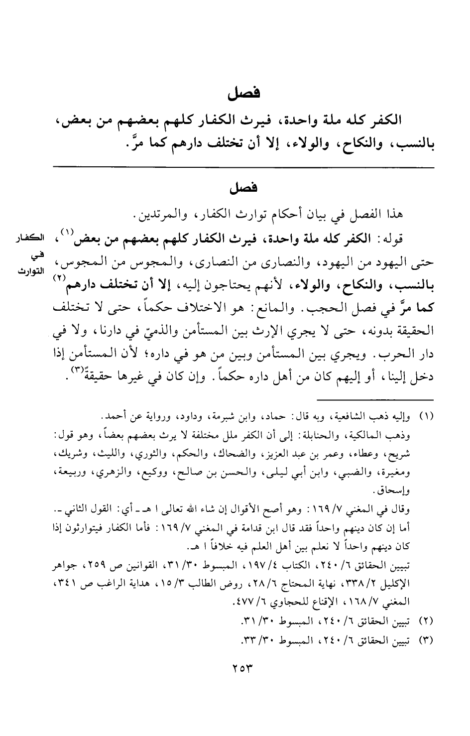 (¬٣) تبيين الحقائق ٦/ ٢٤٠، المبسوط ٣٠/ ٣٣.