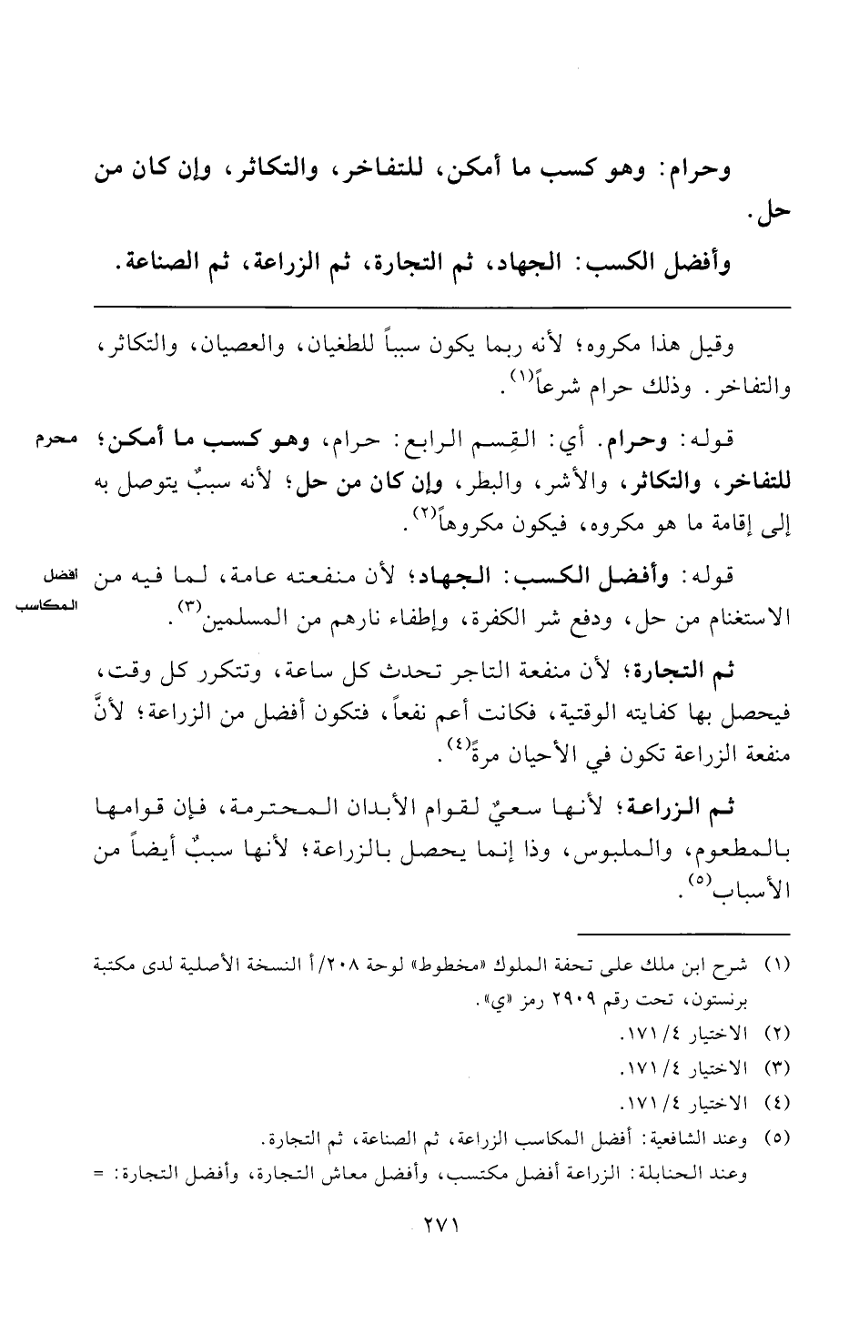 (¬٥) وعند الشافعية: أفضل المكاسب الزراعة، ثم الصناعة، ثم التجارة.