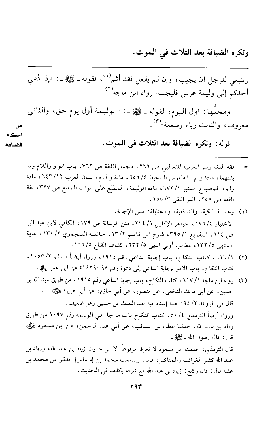 (¬٣) رواه ابن ماجه ١/ ٦١٧، كتاب النكاح، باب إجابة الداعي رقم ١٩١٥، من طريق عبد الله بن حسين، عن أبي مالك النخعي، عن منصور، عن أبي حازم، عن أبي هريرة -رضي الله عنه- ...