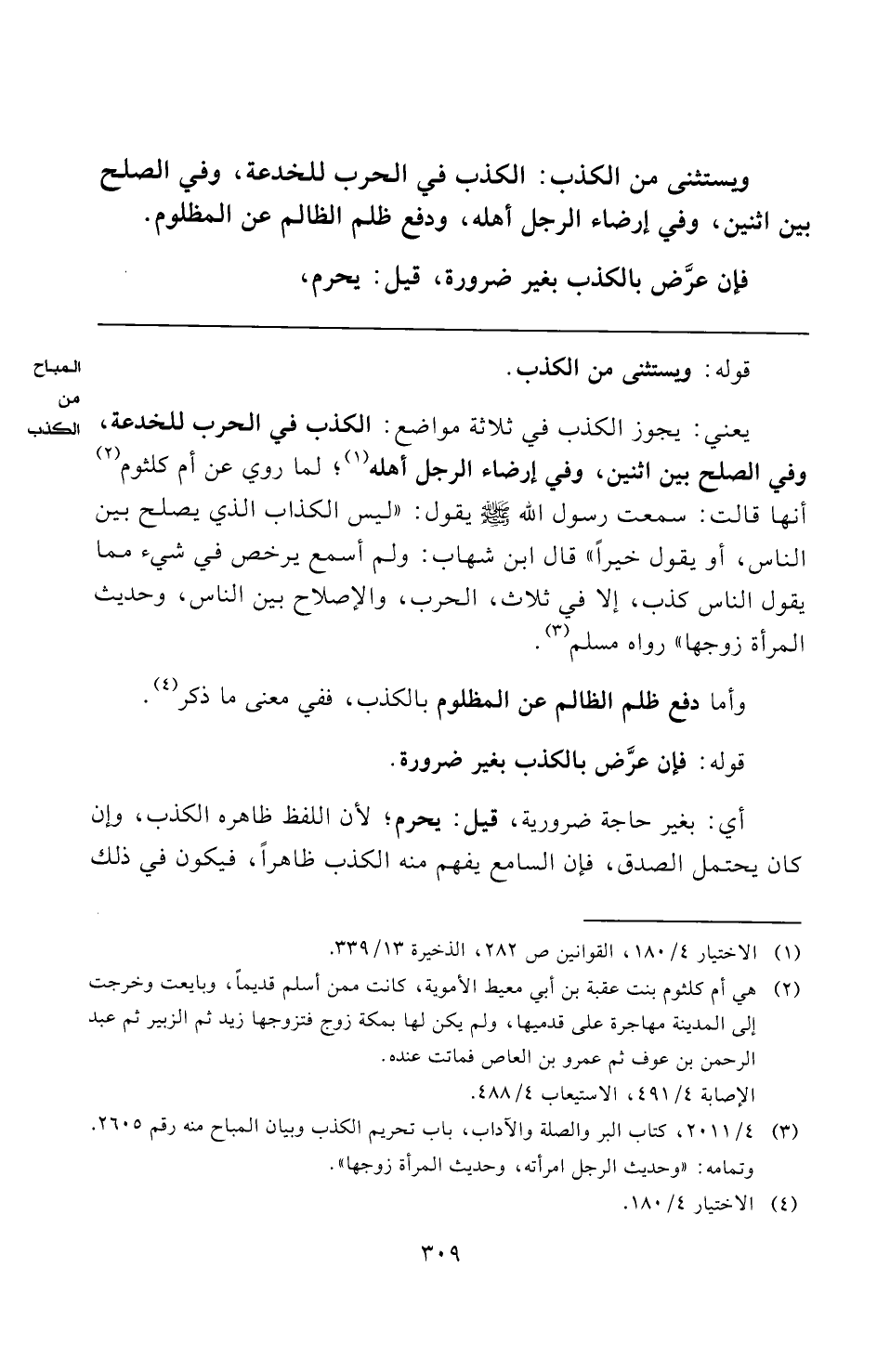 (¬٣) ٤/ ٢٠١١، كتاب البر والصلة والآداب، باب تحريم الكذب وبيان المباح منه رقم ٢٦٠٥. وتمامه: "وحديث الرجل امرأته، وحديث المرأة زوجها".
