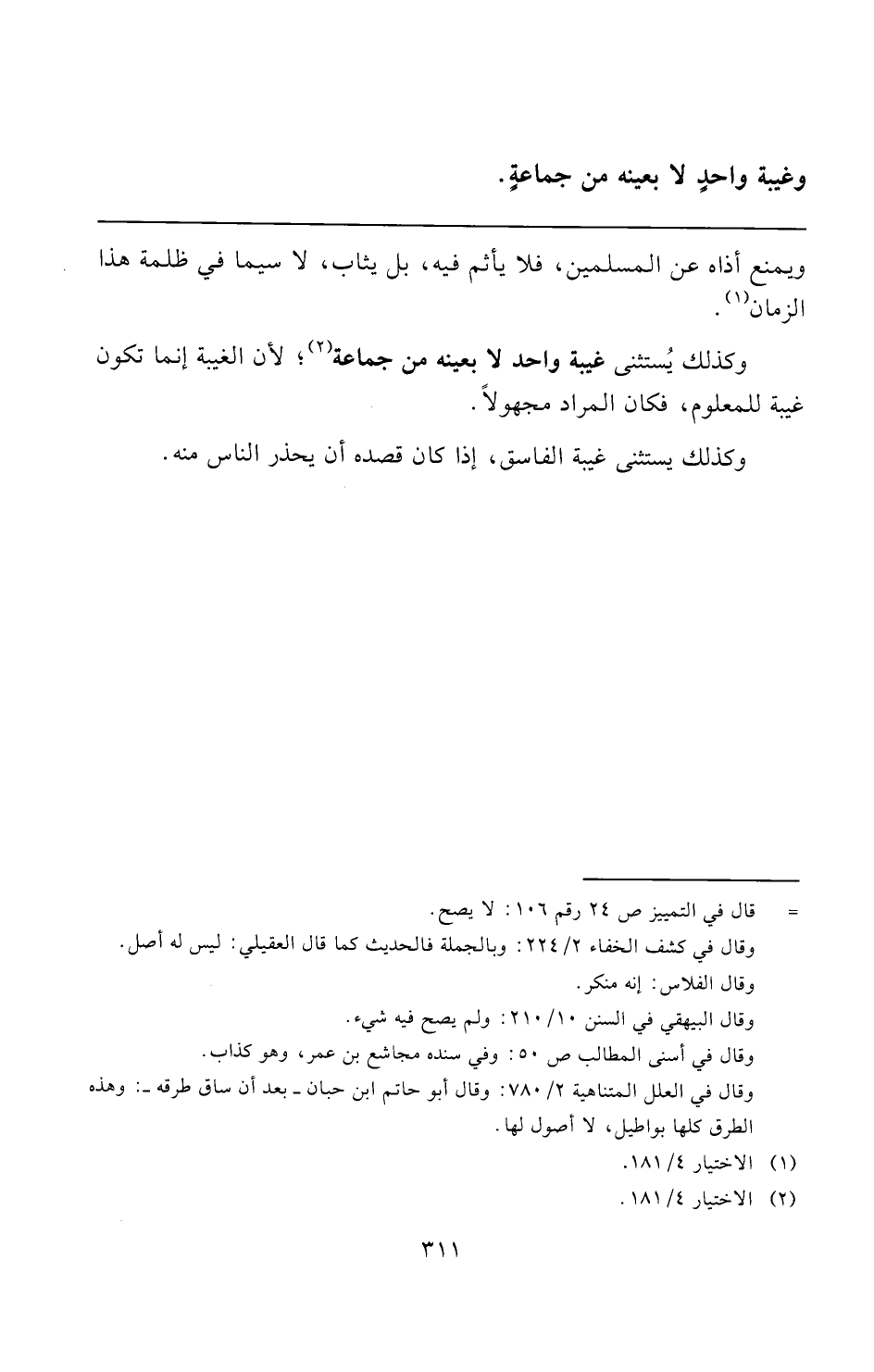 وغيبة واحدٍ لا بعينه من جماعةٍ.