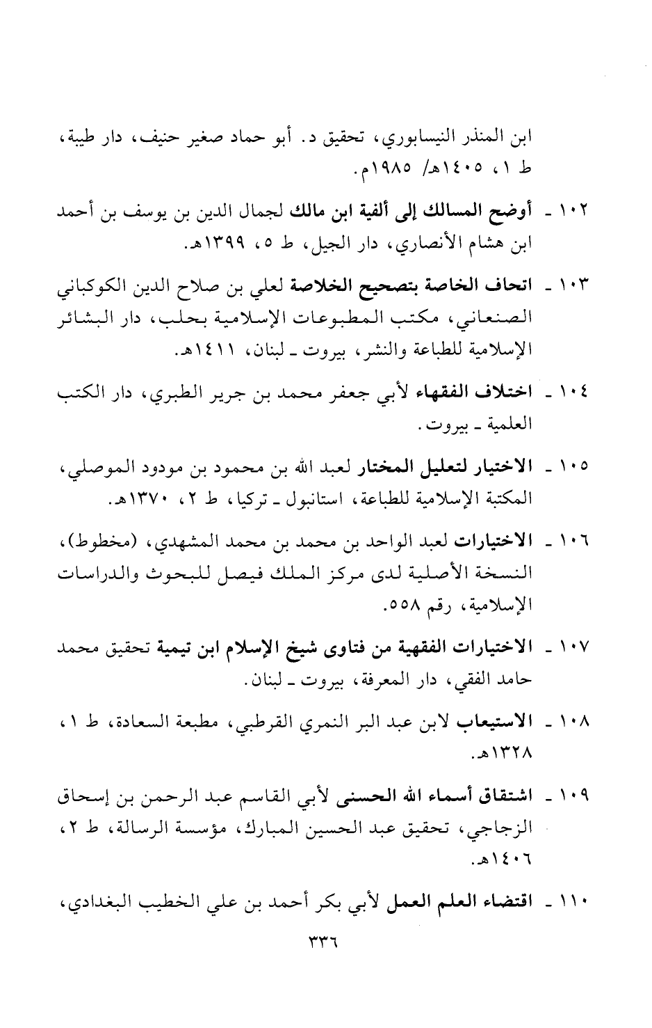 ١٠٧ - الاختيارات الفقهية من فتاوى شيخ الإسلام ابن تيمية تحقيق محمد حامد الفقي، دار المعرفة، بيروت - لبنان.