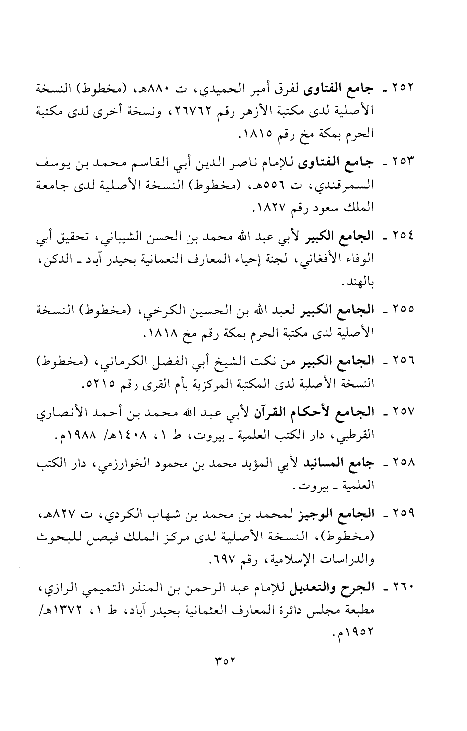 ٢٦٠ - الجرح والتعديل للإمام عبد الرحمن بن المنذر التميمي الرازي، مطبعة مجلس دائرة المعارف العثمانية بحيدر آباد، ط ١، ١٣٧٢ هـ/ ١٩٥٢ م.