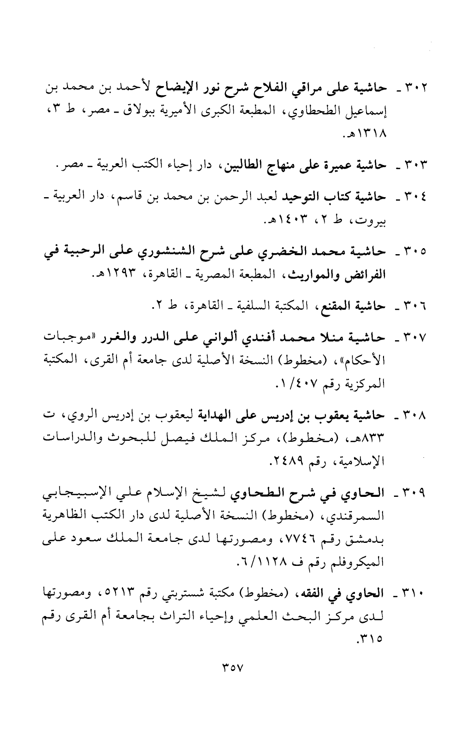 ٣٠٦ - حاشية المقنع، المكتبة السلفية - القاهرة، ط ٢.