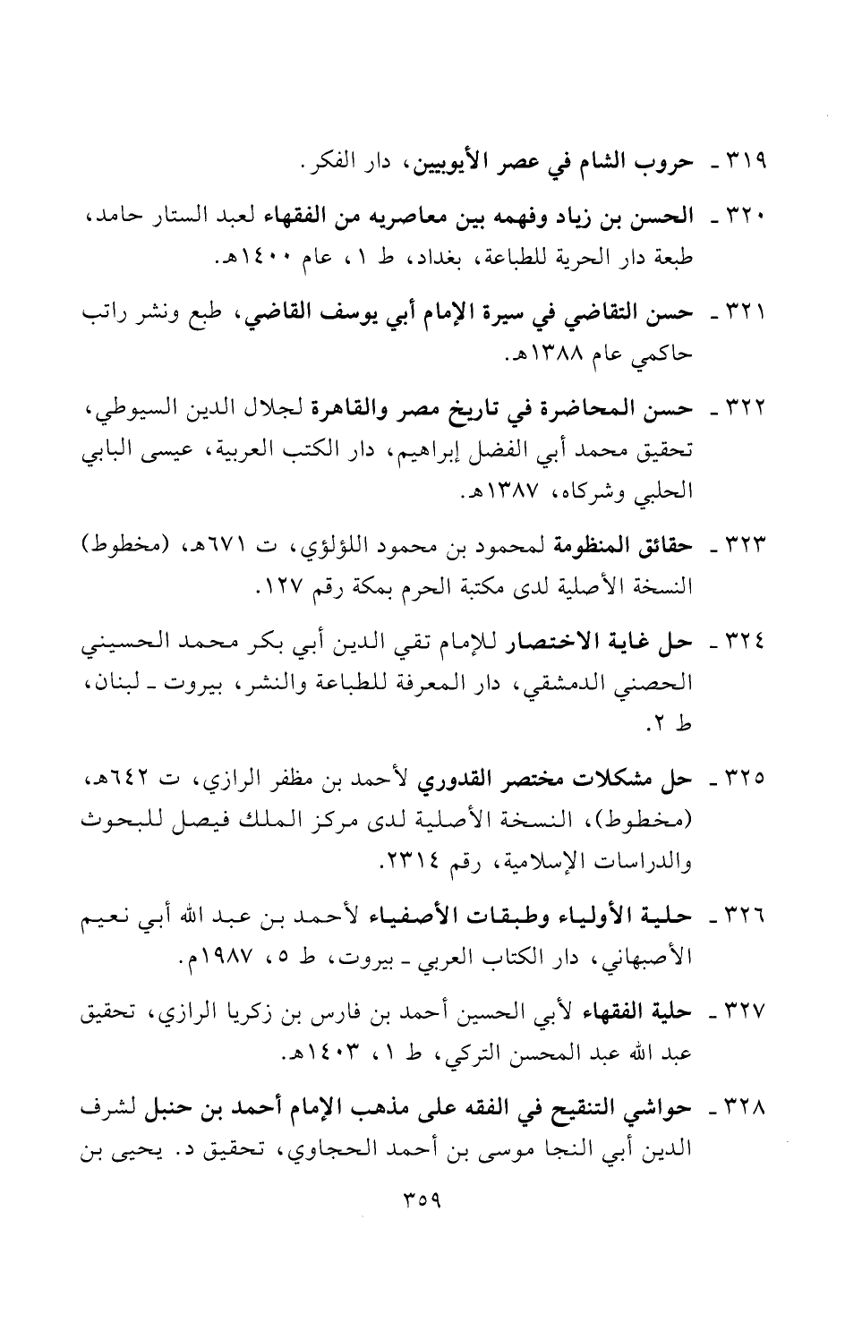 ٣٢٠ - الحسن بن زياد وفهمه بين معاصريه من الفقهاء لعبد الستار حامد، طبعة دار الحرية للطباعة، بغداد، ط ١، عام ١٤٠٠ هـ.