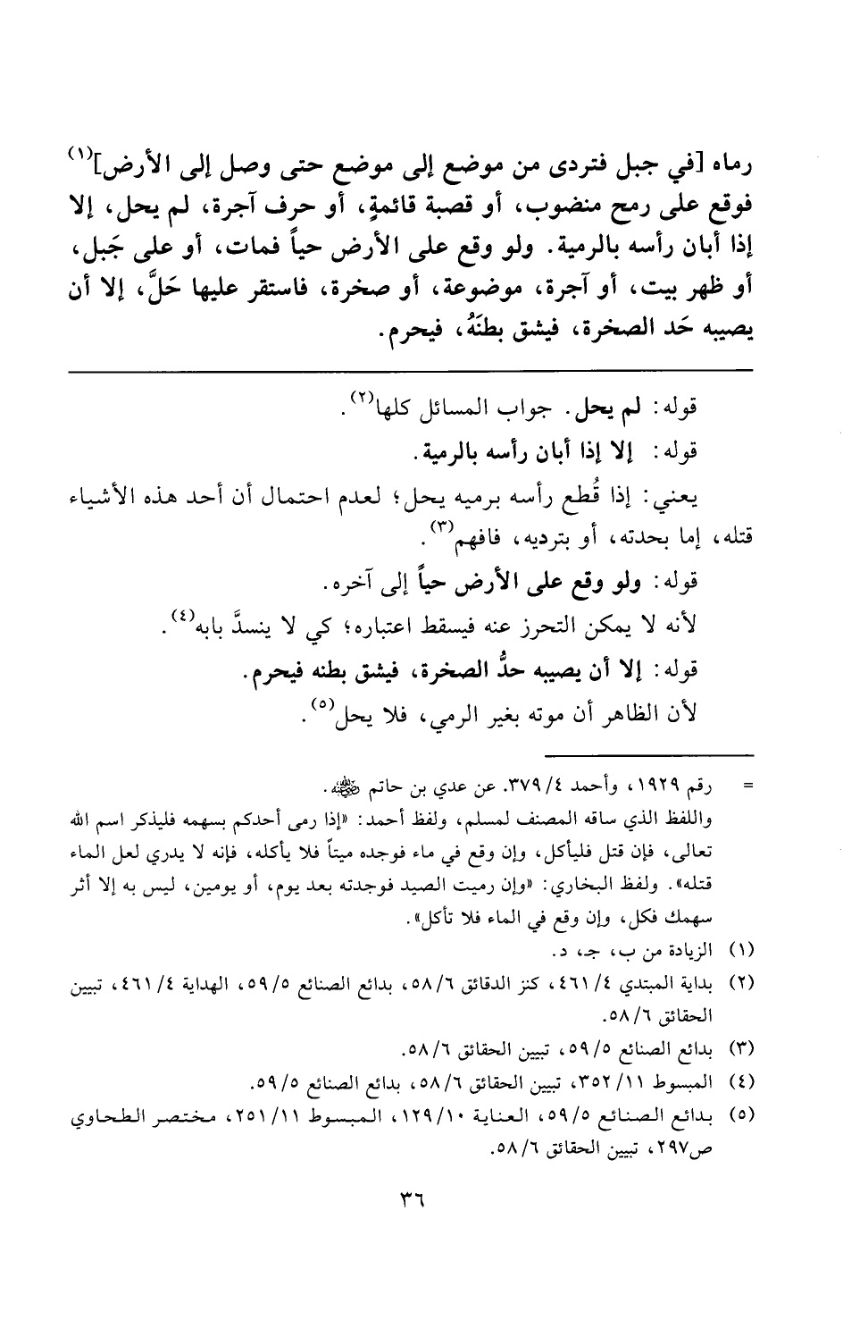 (¬٥) بدائع الصنائع ٥/ ٥٩، العناية ١٠/ ١٢٩، المبسوط ١١/ ٢٥١، مختصر الطحاوي ص ٢٩٧، تبيين الحقائق ٦/ ٥٨.