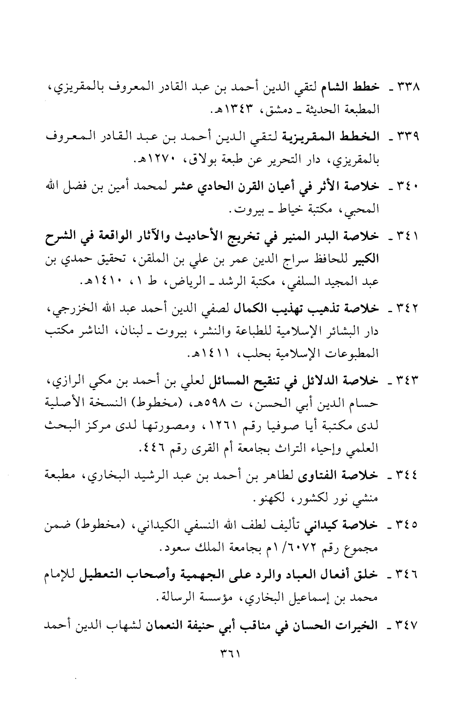 ٣٤١ - خلاصة البدر المنير في تخريج الأحاديث والآثار الواقعة في الشرح الكبير للحافظ سراج الدين عمر بن علي بن الملقن، تحقيق حمدي بن عبد المجيد السلفي، مكتبة الرشد - الرياض، ط ١، ١٤١٠ هـ.