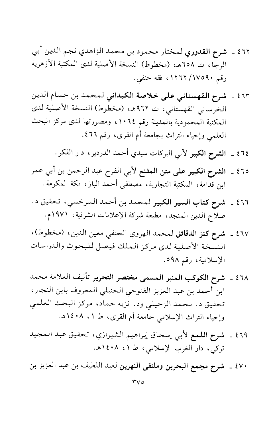 ٤٦٣ - شرح القهستاني على خلاصة الكيداني لمحمد بن حسام الدين الخرساني القهستاني، ت ٩٦٢ هـ، (مخطوط) النسخة الأصلية لدى المكتبة المحمودية بالمدينة رقم ١٠٦٤، ومصورتها لدى مركز البحث العلمي وإحياء التراث بجامعة أم القرى، رقم ٤٦٦.
