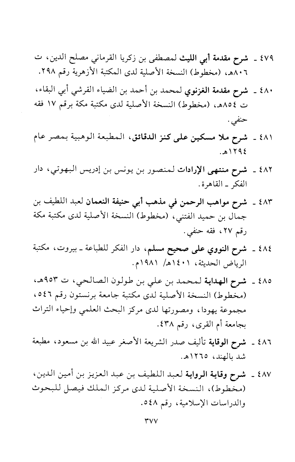 ٤٧٩ - شرح مقدمة أبي الليث لمصطفى بن زكريا القرماني مصلح الدين، ت ٨٠٦ هـ، (مخطوط) النسخة الأصلية لدى المكتبة الأزهرية رقم ٢٩٨.