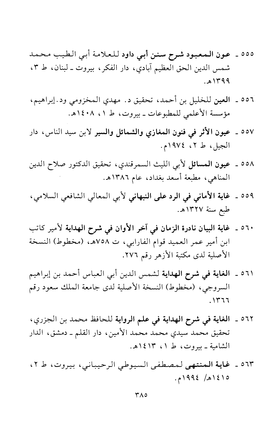 ٥٥٥ - عون المعبود شرح سنن أبي داود للعلامة أبي الطيب محمد شمس الدين الحق العظيم آبادي، دار الفكر، بيروت - لبنان، ط ٣، ١٣٩٩ هـ.