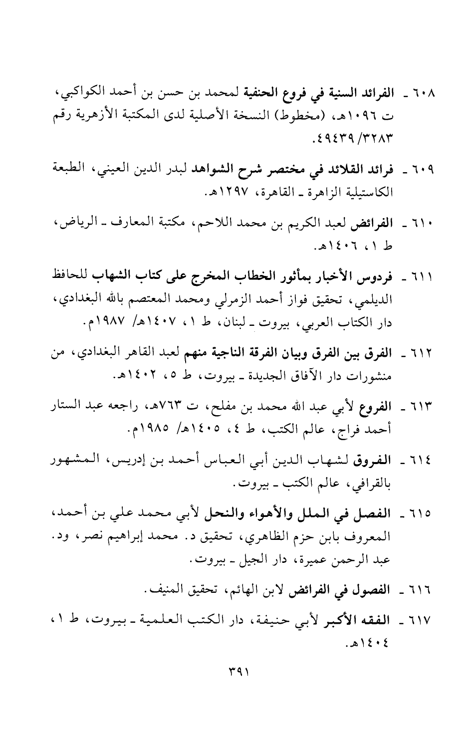٦١٣ - الفروع لأبي عبد الله محمد بن مفلح، ت ٧٦٣ هـ، راجعه عبد الستار أحمد فراج، عالم الكتب، ط ٤، ١٤٠٥ هـ / ١٩٨٥ م.
