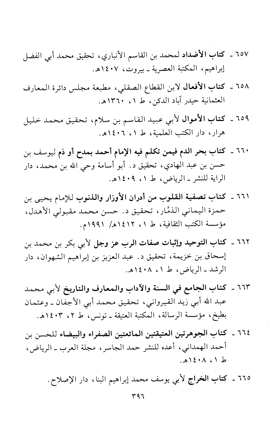 ٦٦٣ - كتاب الجامع في السنة والآداب والمعارف والتاريخ لأبي محمد عبد الله أبي زيد القيرواني، تحقيق محمد أبي الأجفان - وعثمان بطيخ، مؤسسة الرسالة، المكتبة العتيقة - تونس، ط ٢، ١٤٠٣ هـ.