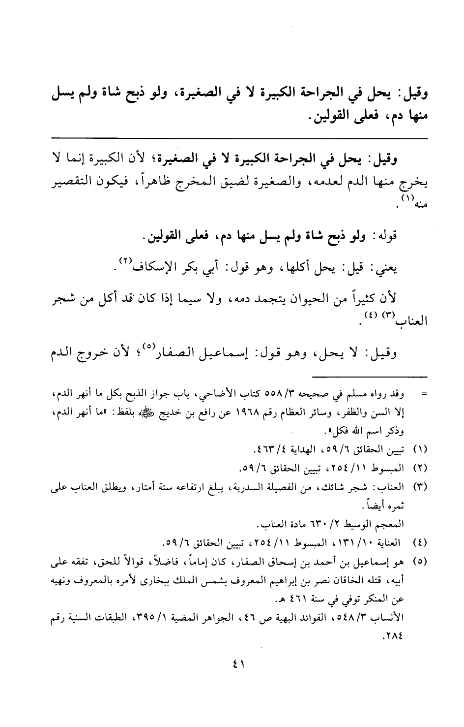 (¬٤) العناية ١٠/ ١٣١، المبسوط ١١/ ٢٥٤، تبيين الحقائق ٦/ ٥٩.