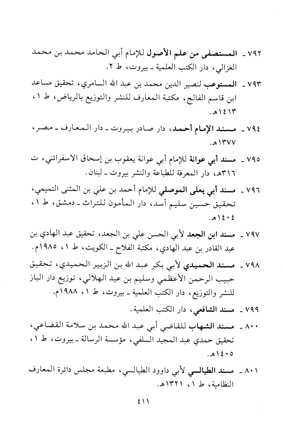٧٩٢ - المستصفى من علم الأصول للإمام أبي الحامد محمد بن محمد الغزالي، دار الكتب العلمية - بيروت، ط ٢.