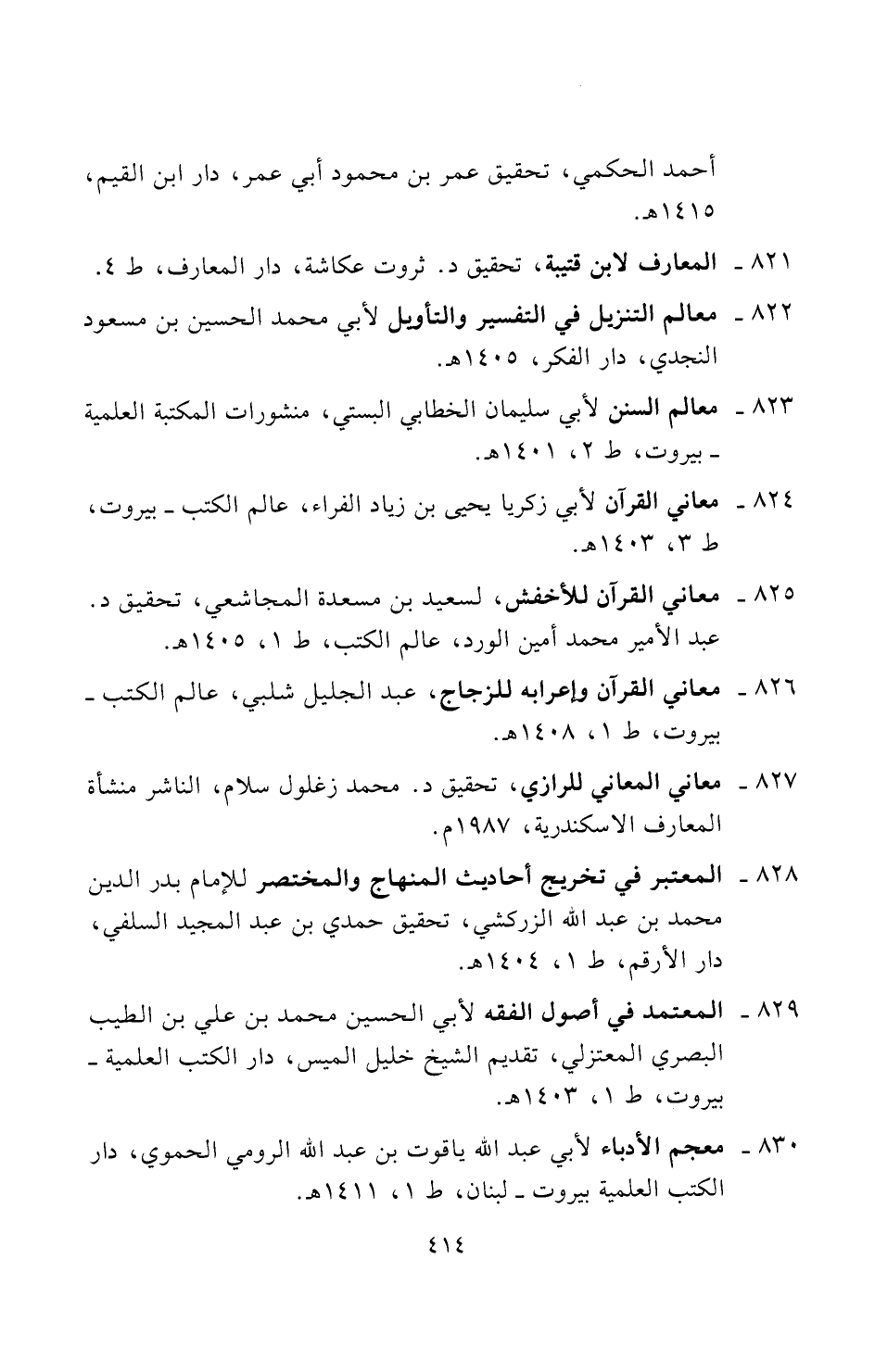 ٨٢٦ - معاني القرآن وإعرابه للزجاج، عبد الجليل شلبي، عالم الكتب - بيروت، ط ١، ١٤٠٨ هـ.