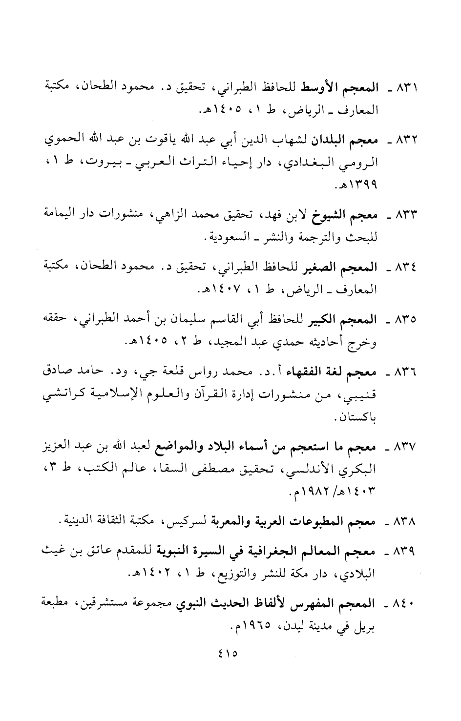 ٨٣٥ - المعجم الكبير للحافظ أبي القاسم سليمان بن أحمد الطبراني، حققه وخرج أحاديثه حمدي عبد المجيد، ط ٢، ١٤٠٥ هـ.