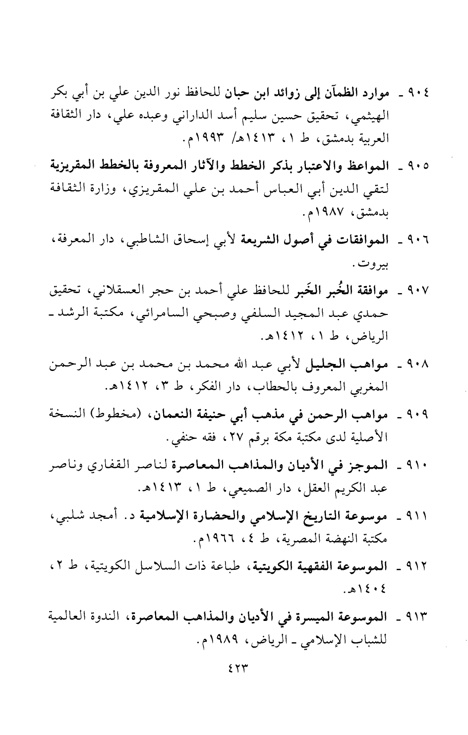 ٩٠٦ - الموافقات في أصول الشريعة لأبي إسحاق الشاطبي، دار المعرفة، بيروت.