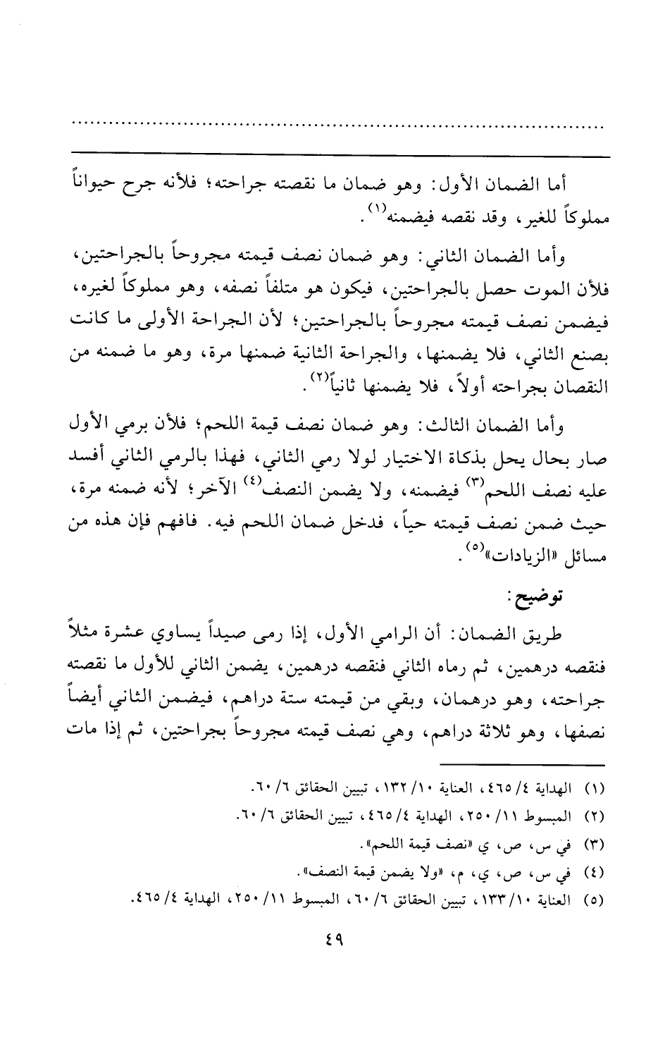 (¬٥) العناية ١٠/ ١٣٣، تبيين الحقائق ٦/ ٦٠، المبسوط ١١/ ٢٥٠، الهداية ٤/ ٤٦٥.