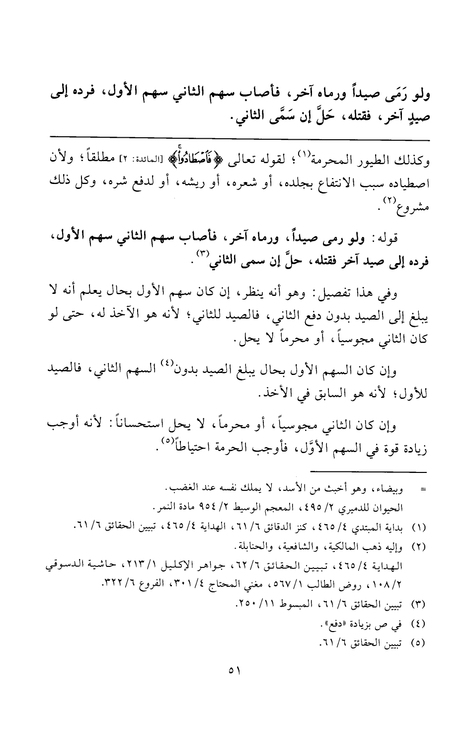 وفي هذا تفصيل: وهو أنه ينظر، إن كان سهم الأول بحال يعلم أنه لا يبلغ إلى الصيد بدون دفع الثاني، فالصيد للثاني؛ لأنه هو الآخذ له، حتى لو كان الثاني مجوسيًا، أو محرمًا لا يحل.