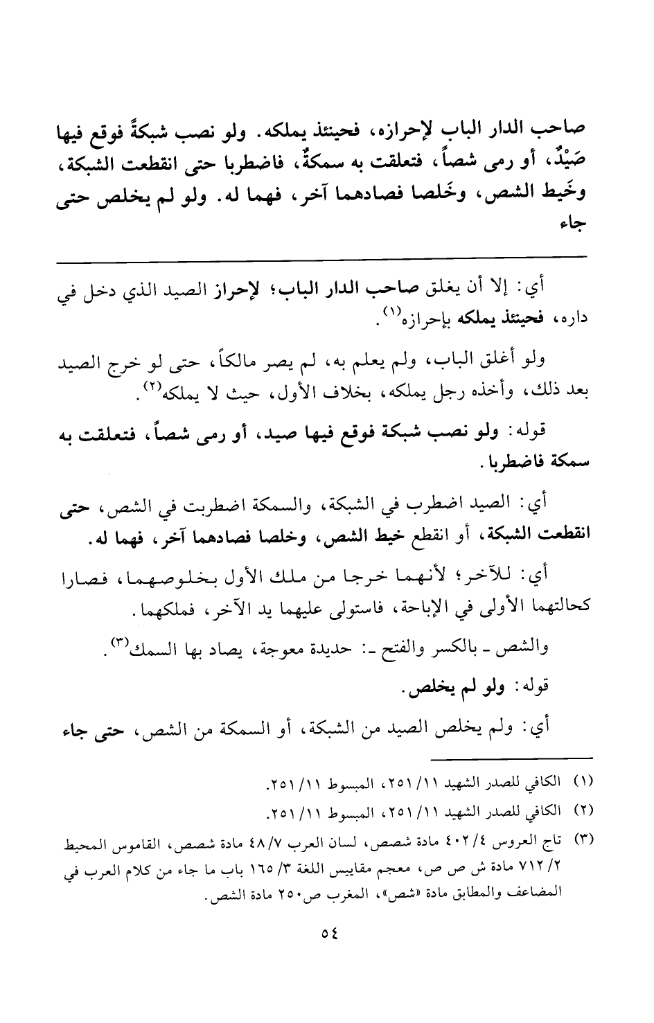 (¬٣) تاج العروس ٤/ ٤٠٢ مادة شصص، لسان العرب ٧/ ٤٨ مادة شصص، القاموس المحيط ٢/ ٧١٢ مادة ش ص ص، معجم مقاييس اللغة ٣/ ١٦٥ باب ما جاء من كلام العرب في المضاعف والمطابق مادة "شص"، المغرب ص ٢٥٠ مادة الشص.