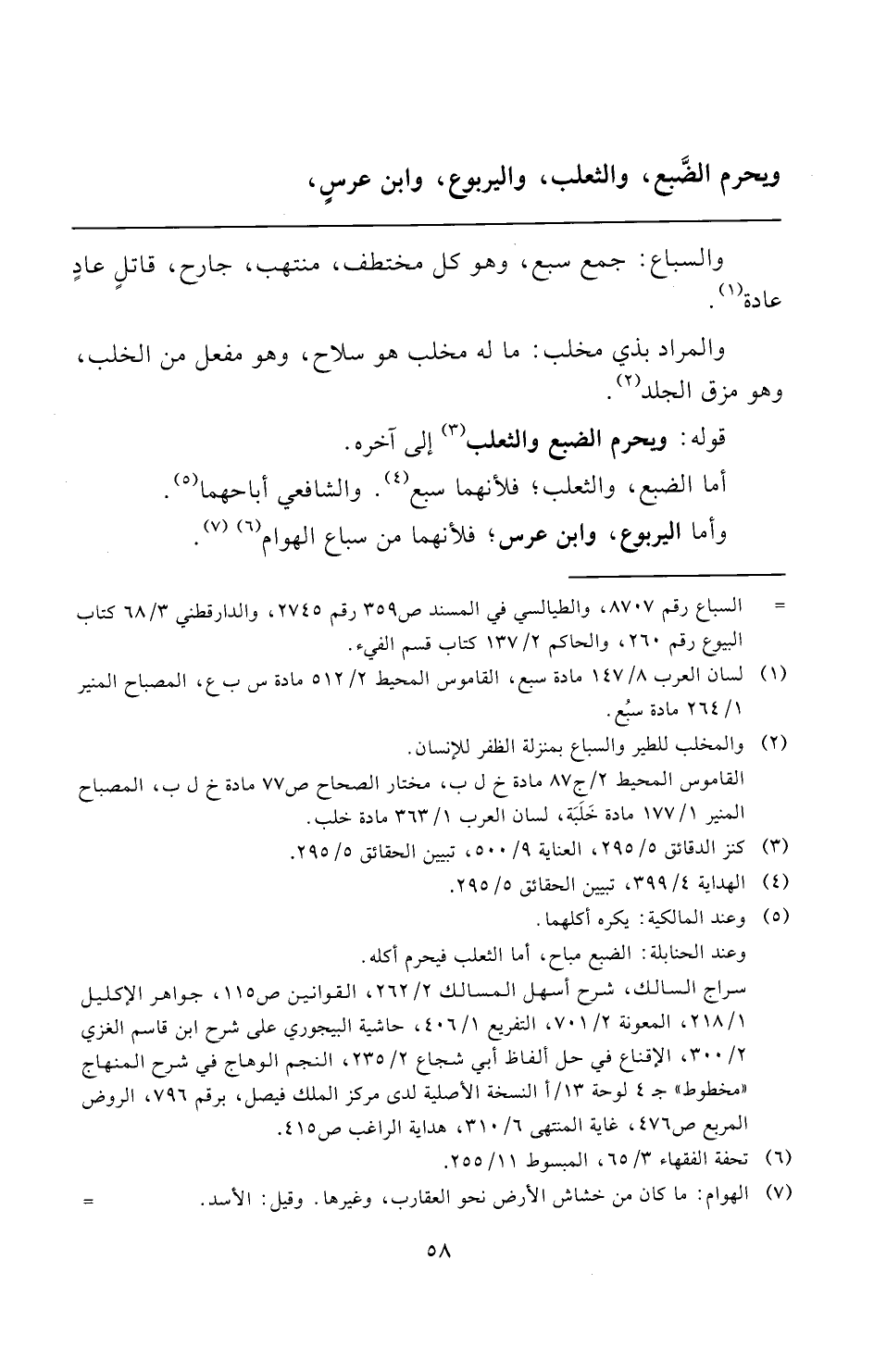 (¬١) لسان العرب ٨/ ١٤٧ مادة سبع، القاموس المحيط ٢/ ٥١٢ مادة س ب ع، المصباح المنير ١/ ٢٦٤ مادة سبُع.