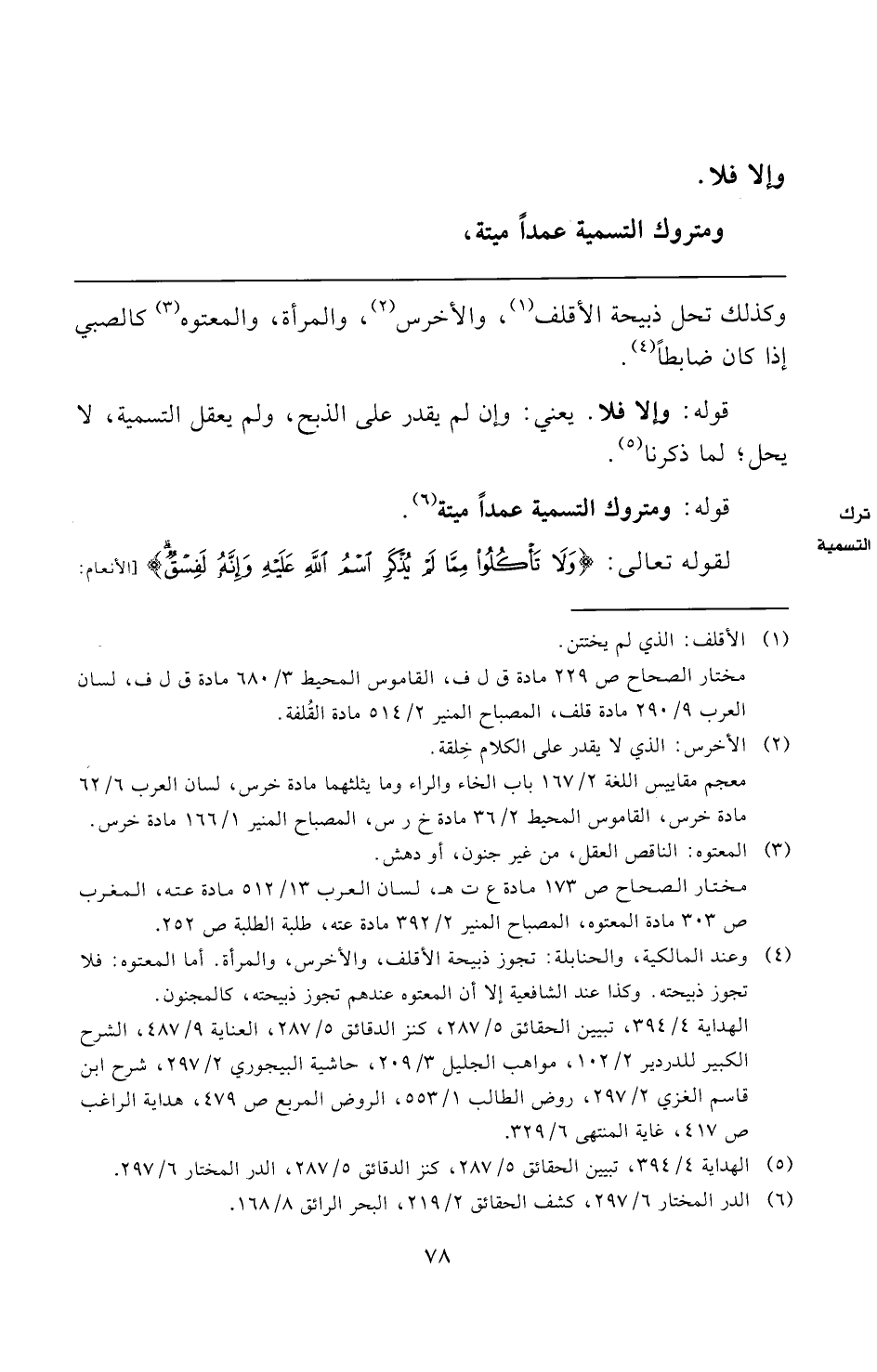 قوله: ومتروك التسمية عمدًا ميتة (¬٦).