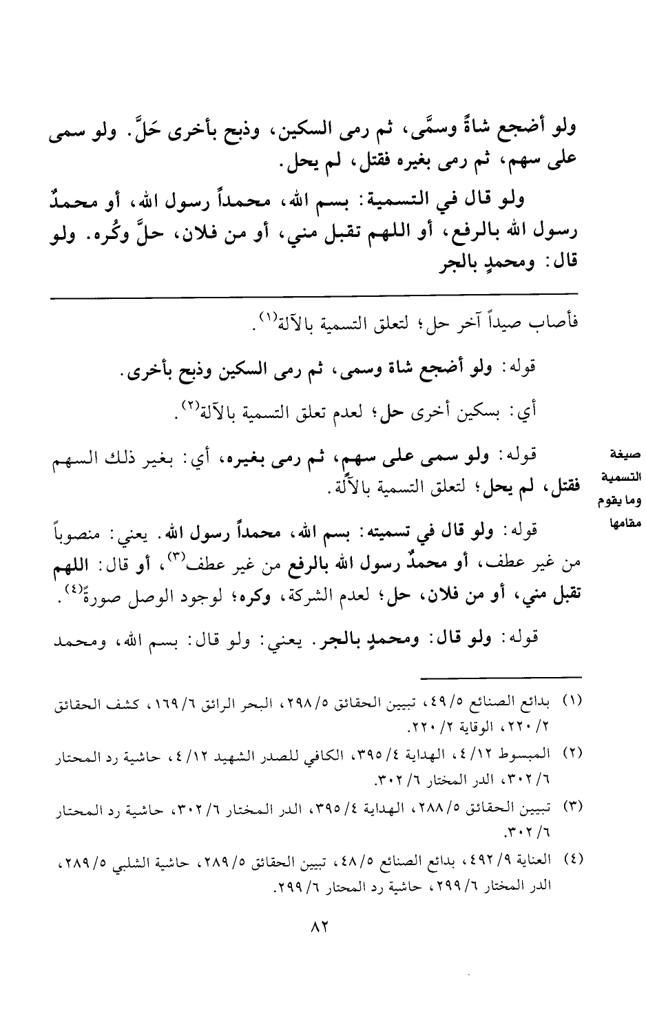 (¬٤) العناية ٩/ ٤٩٢، بدائع الصنائع ٥/ ٤٨، تبيين الحقائق ٥/ ٢٨٩، حاشية الشلبي ٥/ ٢٨٩، الدر المختار ٦/ ٢٩٩، حاشية رد المحتار ٦/ ٢٩٩.