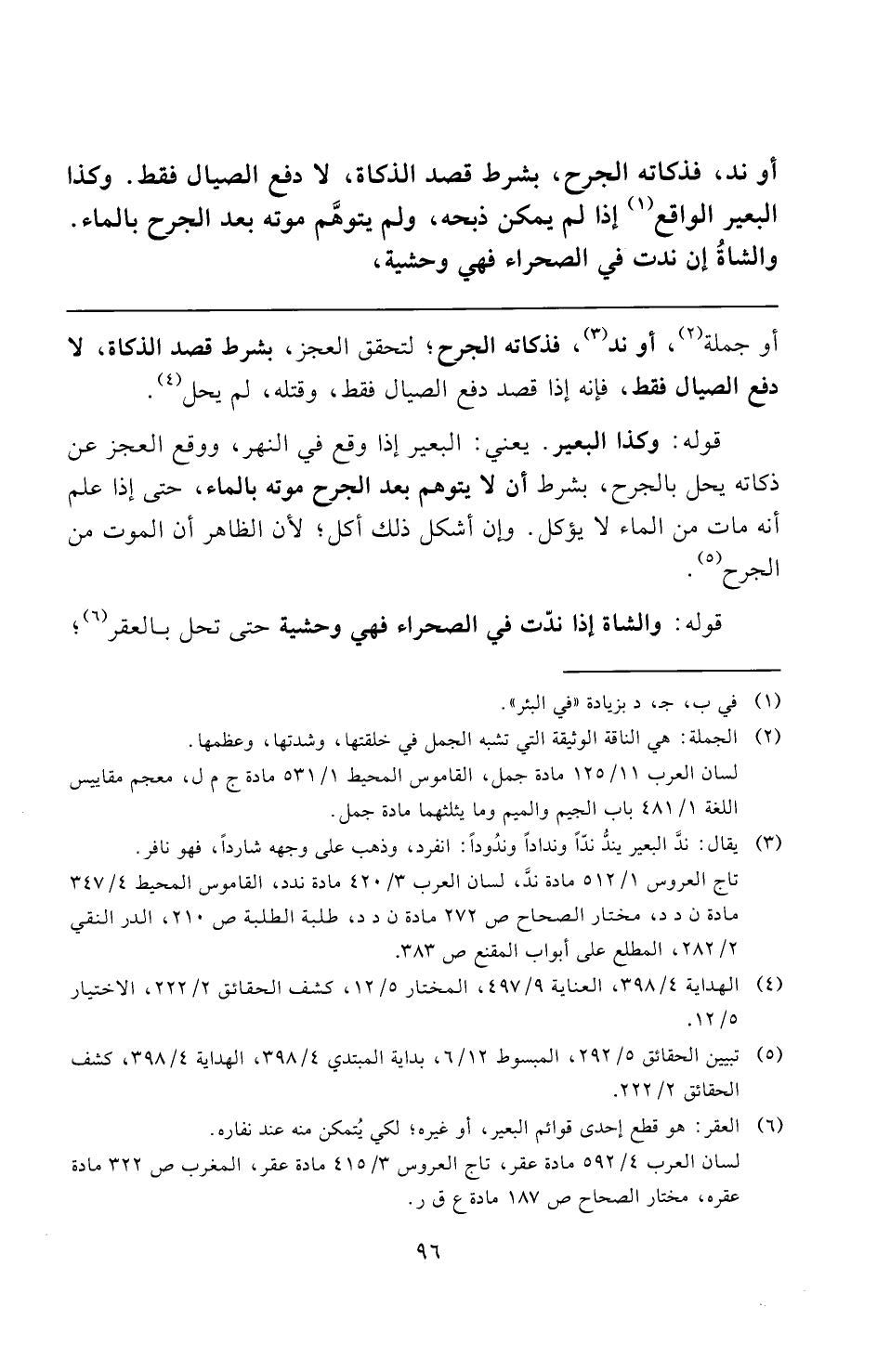 (¬٦) العقر: هو قطع إحدى قوائم البعير، أو غيره؛ لكي يُتمكن منه عند نفاره.